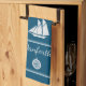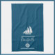 Elegantens mörk blått och vita design med ett nautiskt tema. Anpassa ditt namn i mallen. Med en segelbåt som seglar förbi och en navigeringsikon, kommer det här badmattan att tillföra elegant till badrummet.