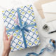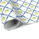 Vattenfärgad handmålad förpackning papper med blå och vita plattor och citron.