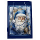En vacker blå och vit julsäck med Pappa jul i blå Ge, dina gåvor i elegans denna julsäsong