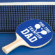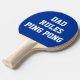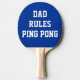 En blå och vit pingpongpjäs med text som du kan anpassa. Pappa Regler! Om din Pappa vill leka, så ge honom en pingpongpadle i dag. Det är redan har hans namn på det!