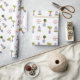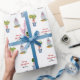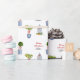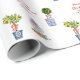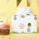 Handtryckt personlig God jul med vattenfärg papper med blått och vitt lergods och topar.