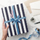Blå och vit Rand-gåva Presentpapper