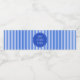 Blå och vit rand med en blå cirkel, flaska-etiketter i monogram.
