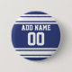 Blå och vit Rand med Namn och nummer Knapp