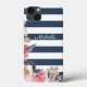 Den sjöblå och vita rand-designen med blommor gör ett vackert mobilt cellomslag. Lägg till ditt namn för att anpassa det och göra det till ett slags namn. Tillgänglig för att passa olika modeller