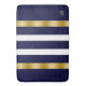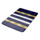 Blå och vit randig mönster med guldfärgade accente badrumsmatta