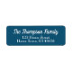 Blå och vit namn och returadressetikett med din familj namn i ett skriptteckensnitt ovanför dina adress-uppgifter.