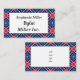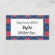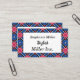 Blå och vit romb och röda cirklar visitkort
