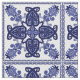Blå och vit är en klassisk färg-kombination. Den här blå och vita utskriften har en art nouveau-inspirerad mönsterdesign.