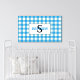 Detta charmiga monogram, med både serif- och sans-serif-teckensnitt, är ett förtjusande tillägg till ett babypojkens rum. Med ett blått och vitt rutmönster kommer han säkert att tycka om det! Beställ din idag.