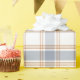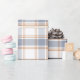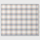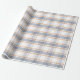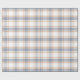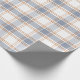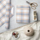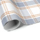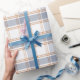 Ljus, könsneutralt inslagspapper med ett tidlöst regency-rutmönster i en mjuk blå, vit och orange färgpalett.