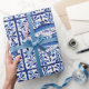 Trendig Medelhavssnäckfisk mönster i blått på vit botten för en sommarkänsla i roligtens kustflotta.
