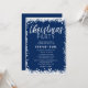 Högtidssäsongen är här! Fira med denna moderna blå och vita julfestinbjudan. Designen har en konfettisnögräns och en kalligrafisk typsnitt.
