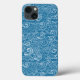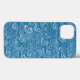En invecklad virvel och våg blandas i olika blyskuggor. Stora och små blå cirklar omges av större virvelvinklar.