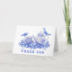 Tack vare det här kortet har du en monokrom design med en blå och vit teuppsättning omgiven av fåglar och blommor.