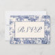 Vi presenterar eleganta och tidlösa bröllop RSVP-kort. Diskret blå och vit toile är en tidlös klassiker för ditt bröllop. Leta efter de andra vackra delarna i denna samling.