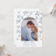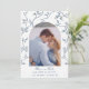 Delikat blå och vit Toile med fåglar och blommor runt en valvformad ram med parets foto Spara datum-kort