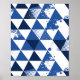Denna design har ett modernt geometriskt mönster som består av sammankopplade trianglar i tre huvudfärger: mörkblå, ljusblå och vit. Trianglarna skapar en rytmisk, upprepad layout som bildar en dynamisk visuell textur. Vissa sektioner innehåller konstnärliga detaljer såsom halvtonspunktsmönster och färgsprutseffekter, vilket ger energi och djup åt den rena geometriska strukturen. Kombinationen av skarpa former och organiska texturer ger designen ett djärvt men ändå kreativt utseende, lämpligt för bakgrunder, textilier eller moderna grafiska layouter.