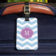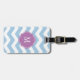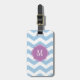 Blå och vit tuggressetikett, monogram bagagebricka