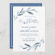 Blå och vit vattenfärg Löv Bröllop Inbjudningar