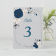 blå och vita blommor bord nummer inbjudningar