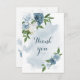 Romantisk blåblomma och vita blommor med lite grönt lämnar botaniskt tackkort