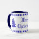 Blått och vitt Modern Julgran och Stars Mönster med anpassningsbar text God jul i Elegant Script, du kan ändra eller ta bort texten, Winter Season Helgdag Coffee Mugg