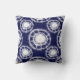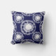 Shibori är den japanska tekniken för döende. Den här snyggten dekorativ kudde har vita skivor eller cirklar på en marin blå bakgrund