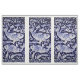 Min ursprungliga, upphovsrättsskyddade, blå och vita keramiska kakelkoi mural reproduceras som tre paneler på ett textilvarv.