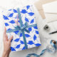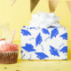 Blåvita och vita studentmössor som kastas i luft efter att ha fått högskole- eller högskoleexamen. Fin papper för en studenten-gåva till student från en skola med färg av blått och vitt.
