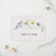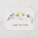 Ett vackert bröllop spara datum-kort med vit bakgrund och blå och vit vattenfärgsblomma Spara datum ingår i en uppsättning produkter som matchar designen. Det här är perfekt för ett mer elegant bröllop i en kyrka.