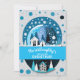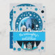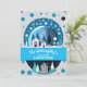 Blå och vita vinterstugor i snöglob med vinterland inbjudningar