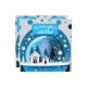 Blå och vita vinterstugor i snöglob snölandskap spara datumet