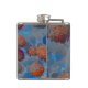 Digital bakgrundsbild av blommigt/blomma mönster gjord med fotokollage-teknik. Färskheten skapas med blått och orange färg används främst.