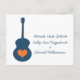 Trendig och stilren Gitarr Hjärtat Spara Datum Postkort med en mörkblå akustisk gitarr och ett sött orange hjärta. Detta moderna och unika spara datum-postkort är perfekt för att tillkännage datumet för din kommande rock-chic musik-tema bröllop! Anpassa med detaljerna om din bröllop. Klicka på "Anpassa"-knappen för att hitta ytterligare anpassningsalternativ.