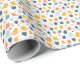 Söt blå, orange och gul kawaii katt baby shower eller födelsedags presentpapper. Färgerna är blå, orange och gula.