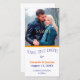 Det här är ett enkelt, klassat Spara datumfoto-kortet Bröllop som ser underbar ut med ditt fotografi, särskilt om det har en dominerande färg av blått, grått eller svartvitt. Orangen gräns grund på fotografiet gör kortet ljusare och uppmärksammar både fotot och texten nedan. Den lättanpassade texten är blå och röd i orange på vit bakgrund.