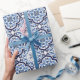 Blå ornate Blommigt Mediterranean Sicilian Tile Presentpapper