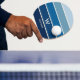 Trendigets pingpongpaddel med bred rand i en rik blå övertoning. Stor centrerad monogram och tillhörande namn. Ren, enkel, minimalistisk typografi. Helt anpassningsbart. Underbar presentidé för en pingpongentusiast eller dig själv. Även sporttillbehör till personlig för alla spelrum.