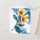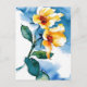 Blomvattenfärgen har löst djup gula blommor med blå grönt löv. Med en bred vattenfärgspenseldrag av blått för att blommorna ska stå ut.