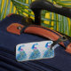 Blå påfågel fågel akvarell resväskemärke. En strålande blomstermotiv för resväskemärken. Designad utifrån mina originala akvarellmålningar.