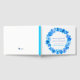 Modern gäst bok i bröllop som har löst vattenfärg tvättar en del av pansierna i kranscirkelform. Anpassa med ditt eget par namn. Perfekt att lämna på ett mottagningsområde för gäster till ord av råd, ett underbart keepsakemento från er giftermål dag. En del av den blå pansies-bröllop-konstuppsättningen. © Unik vattenfärgsfärgkonsmålning och design av Sarah Trett. www.sarahtrett.com för www.mylittleedenweddings.com