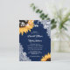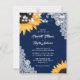 Den här bröllopsinbjudan för elegant och romantisk blommigt med solblommor mot en sammanbrott och snöre bakgrund är perfekt för att bjuda in dina gäster till din marinblå, roliga bröllopsfest inspirerad av solblommor. Kortets baksida har en blå bricka i marinen och snöre-bakgrunden med en solrosa i mitten på kortet som visar parets initialer. Enkel att anpassa mallen. Fullständig utformning av anpassadet. Kontrollera designen när du väljer ett annat kort och justera det för att undvika att det blir vit gräns! storlekt!