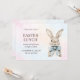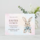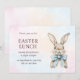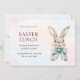 Fyll dig med höstens (fel, ska vara "påskens") anda med denna charmiga påsklunchinbjudan som visar en söt kanin med en blomsterkrans mot en mjuk pastelljus bakgrund. Perfekt för att samla familj och vänner för att fira säsongen, denna vackert designade inbjudan sätter tonen för en trevlig och minnesvärd påsklunch.