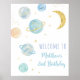 Välkomna gästerna i party med ett bra tecken på personlig. Ram skylten och visningen på bord nära ingången eller fäst poster på skum och visning den utanför på en ål. Den här fina designen har handmålade vattenfärgsplansar med faux guld-folie-stjärnor.