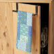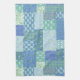 En chic Boho kökshandduk eller tekudde, med en lantlig stil falskt lappverk av olika vackra Periwinkle blommor och koordinerande Gingham-rutor i Blå, Grön och Vit. Del av den Posha och Måleriska 'Periwinkle Patch'-samlingen.