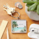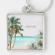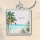 Blå persika av monogrammat Tropical Handflatan Trä Fyrkantig Silverfärgad Nyckelring
