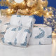 Blindpresenter för bruden och trimmen med en rulle av Blå Peacock Löv Vine Bröllop Wrapping Papper. Den pappra designen har en lätt grått grunge och vit vinrankbakgrund i löv med en vibrant blå påk i vinden. Ytterligare bröllop-kontorsmaterial och presenter som finns tillgängliga med den här utformningen också.