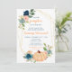 Blå persiko- och marinblåpumpsbabydusch inbjudningar