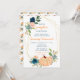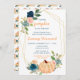 Den här söta och vismliga inbjudan att duscha barn med vattenfärg har persikofärgad orange, baby blue och marin blåpumpor och blommigt. Texten kombinerar handskript och sans serif typsnitt för en snyggt och ett modernt utseende. Det här är perfekt för en höstbarnsköljning. Grafik efter www.etsy.com/uk/shop/SunflowerDayLove